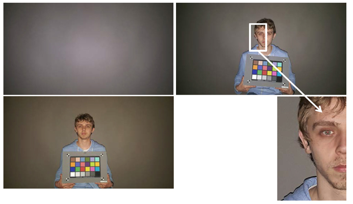 Using the S6’s LED flash as the only light source for a photo (top), the flash light is central within the frame with a uniform background. Flash-only results also display good details and noise levels (100% crop, bottom right), with accurate White Balance and plea